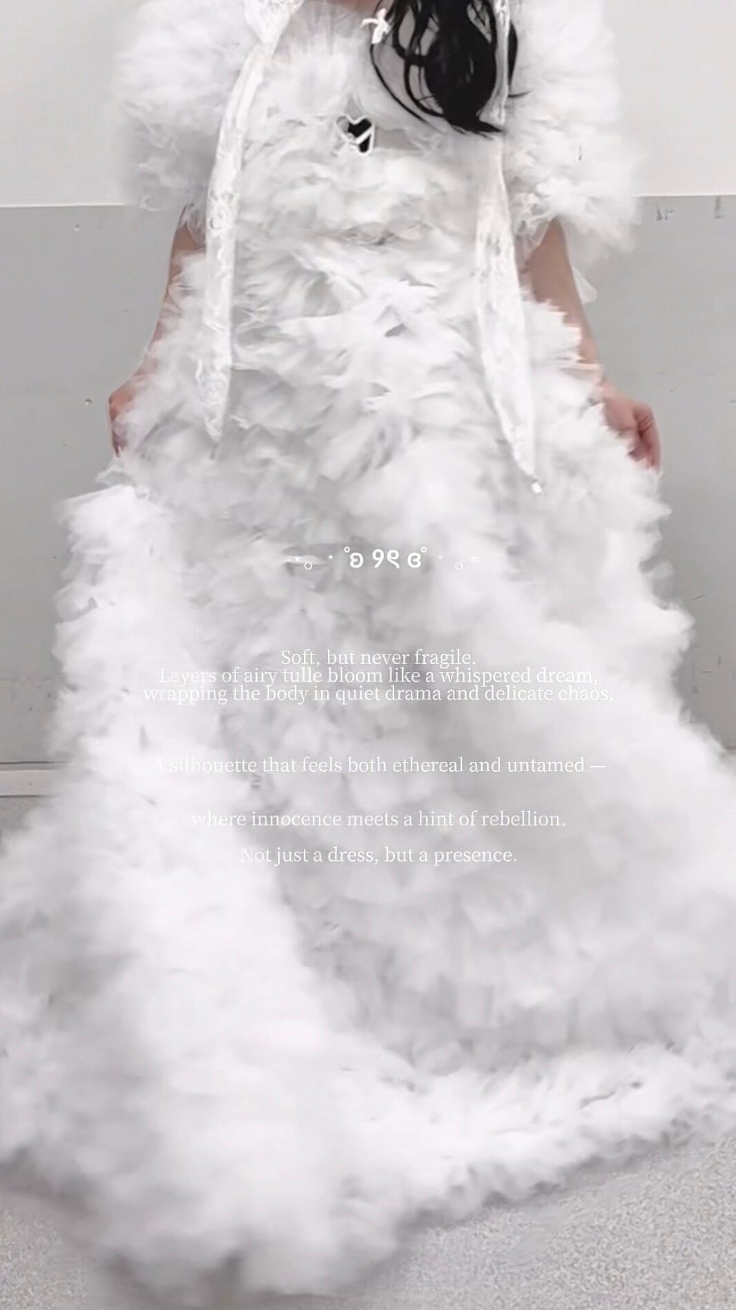 たっぷりと重ねたチュールが生み出す、他にはない圧倒的なボリュームと立体感。