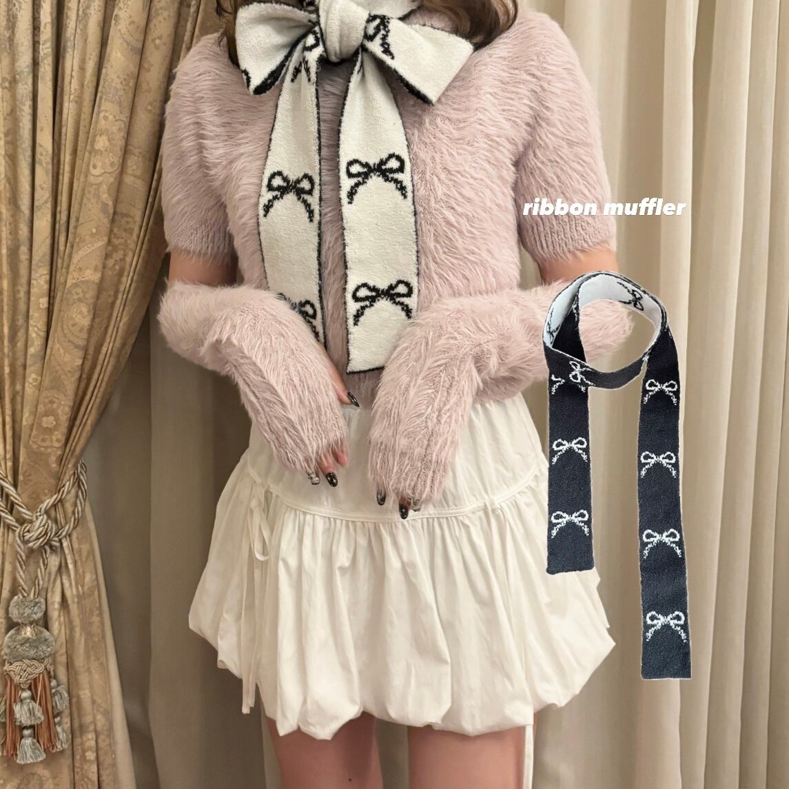 冬の寒さもおしゃれに乗り切る、可愛いribbonデザインのマフラーです。細くなっているのでリボンで結びやすいのもポイント!顔周りを華やかに演出します♡